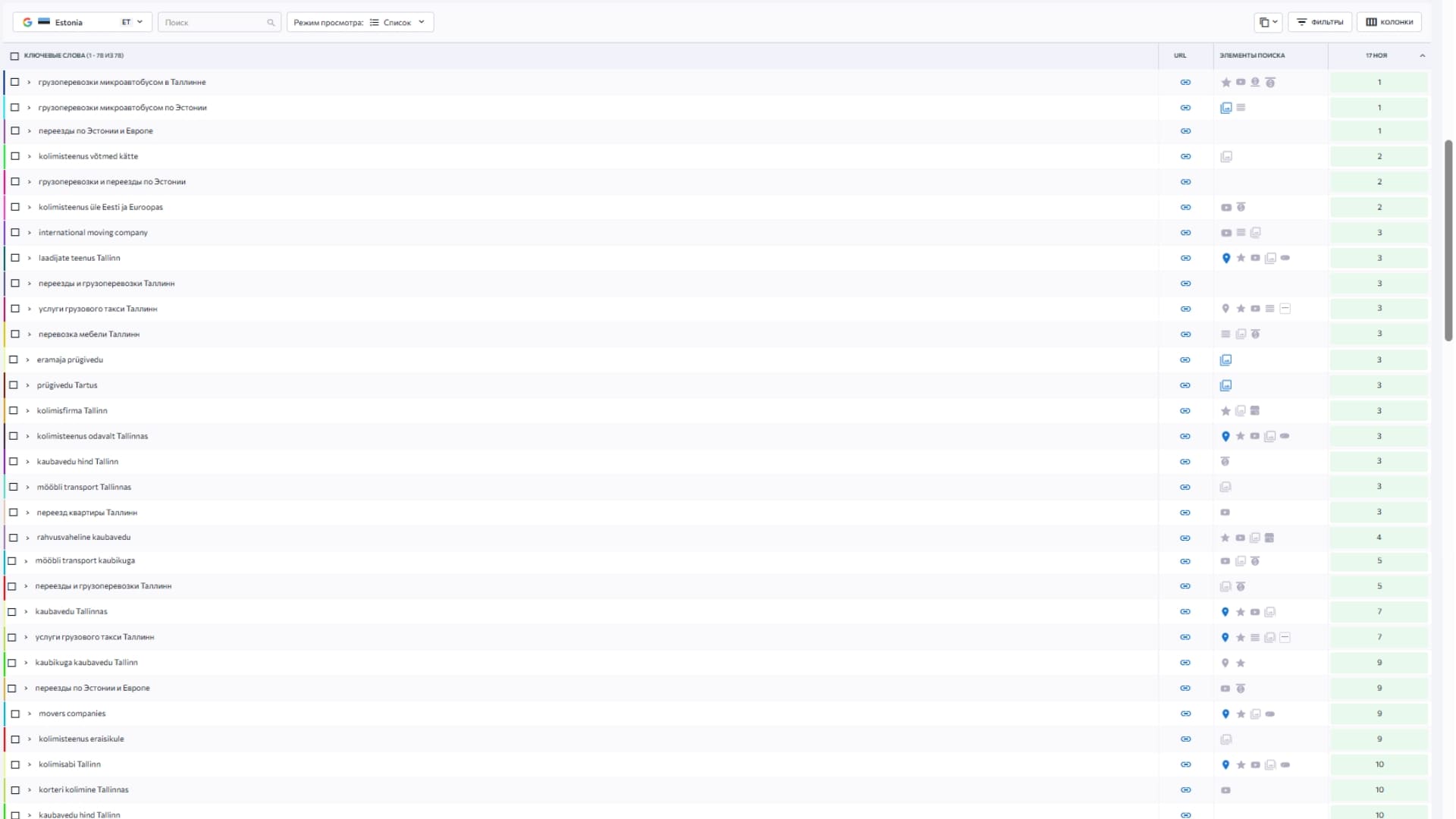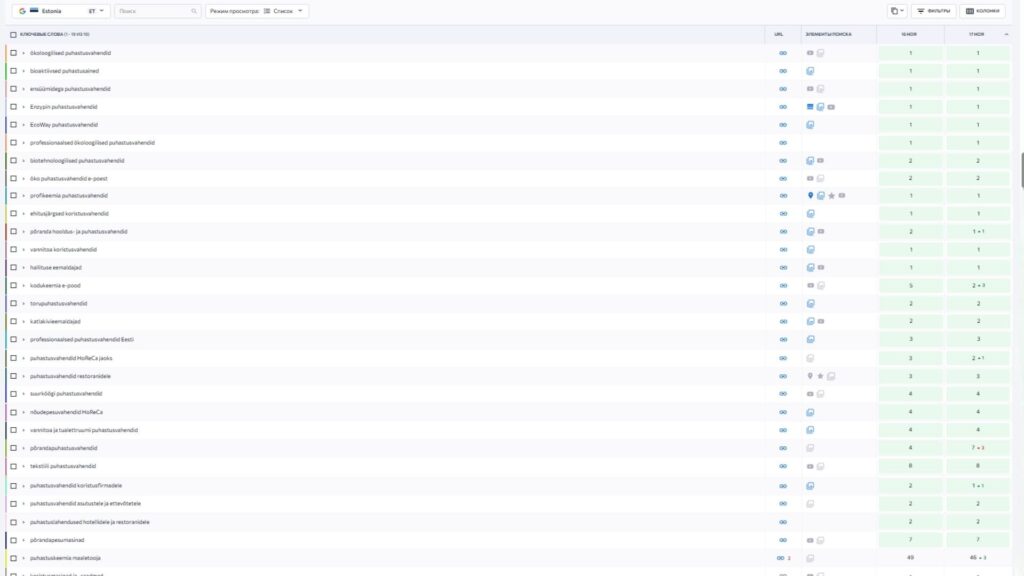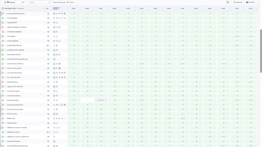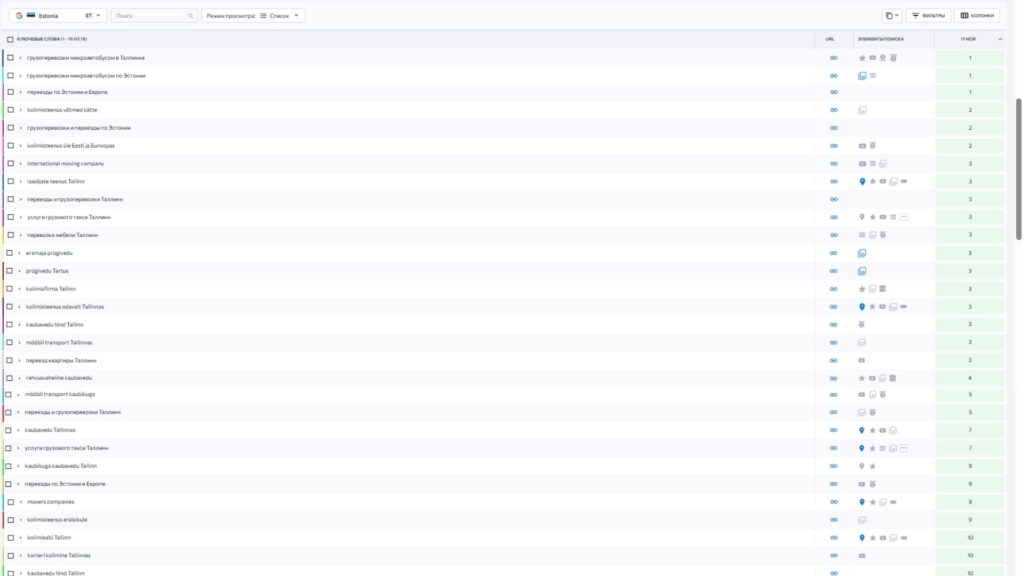 Эти позиции в органической поисковой выдачи Google наглядно демонстрируют, как системная SEO-работа помогает бизнесу занимать лидирующие места по коммерческим запросам на русском, эстонском и английском языках и стабильно получать целевой поисковой трафик. Ознакомьтесь с примерами — и вы увидите, каких результатов можно добиться. Мы готовы применить этот подход и для продвижения вашего проекта.